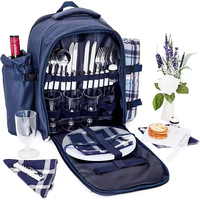 กระเป๋าผ้าใบหุ้มฉนวนกันความร้อนสำหรับการตั้งแคมป์สำหรับครอบครัวการเดินทางกลางแจ้งชุดกระเป๋าเป้ปิกนิกแบบกำหนดเองสำหรับ4คนพร้อมผ้าห่มชุดเครื่องใช้บนโต๊ะอาหารสำหรับปิกนิก